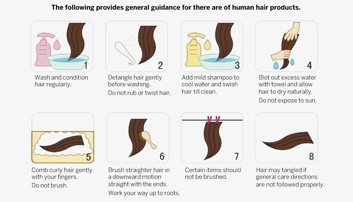 A:The hair tangle because of dryness, oil, dirt build-up, salt water, chlorine, or wrong combing method. High temperature iron clamp on the hair also cause the hair tangle. Please wash the hair 1 - 2 times per week. Comb the hair with a wide tooth comb.